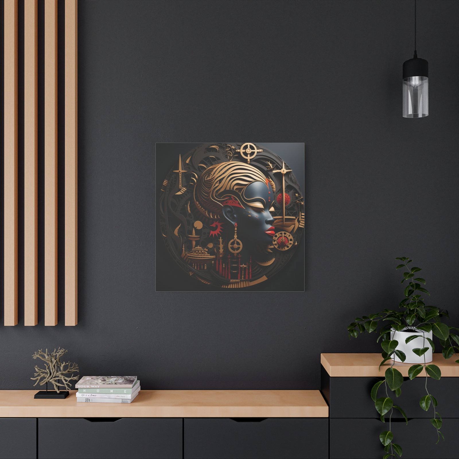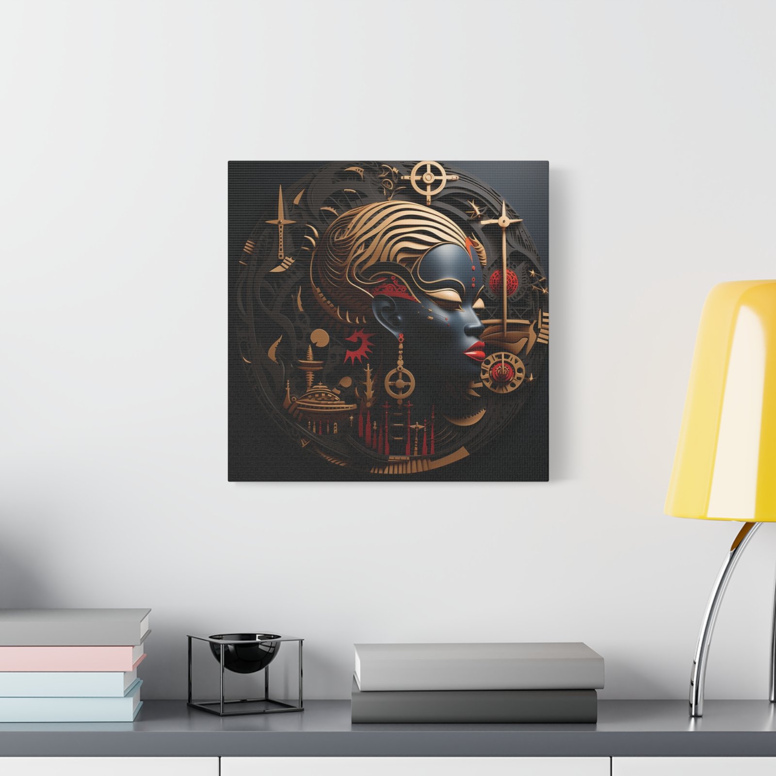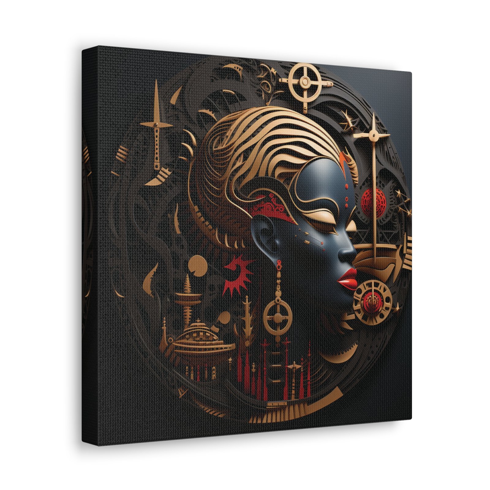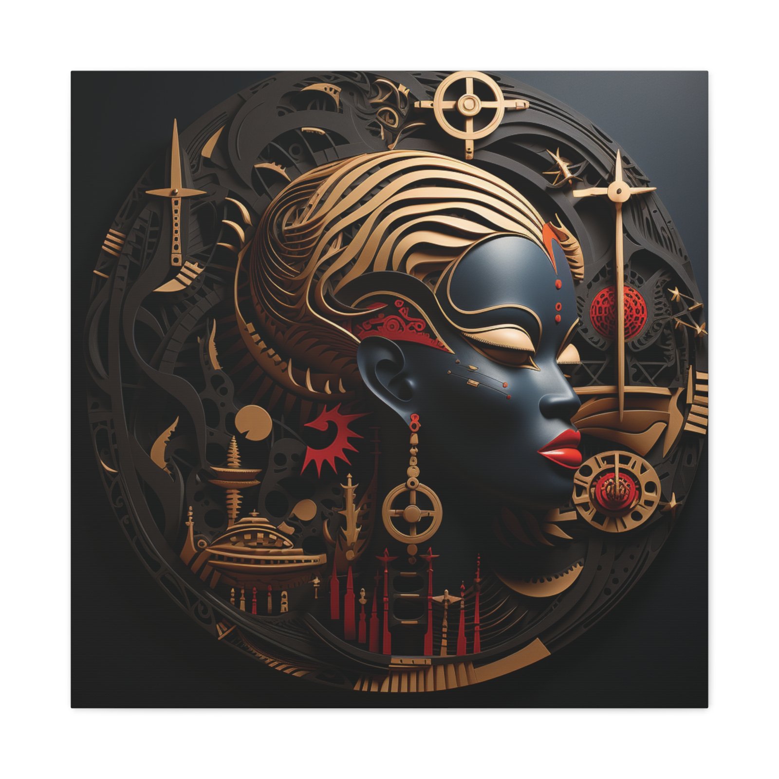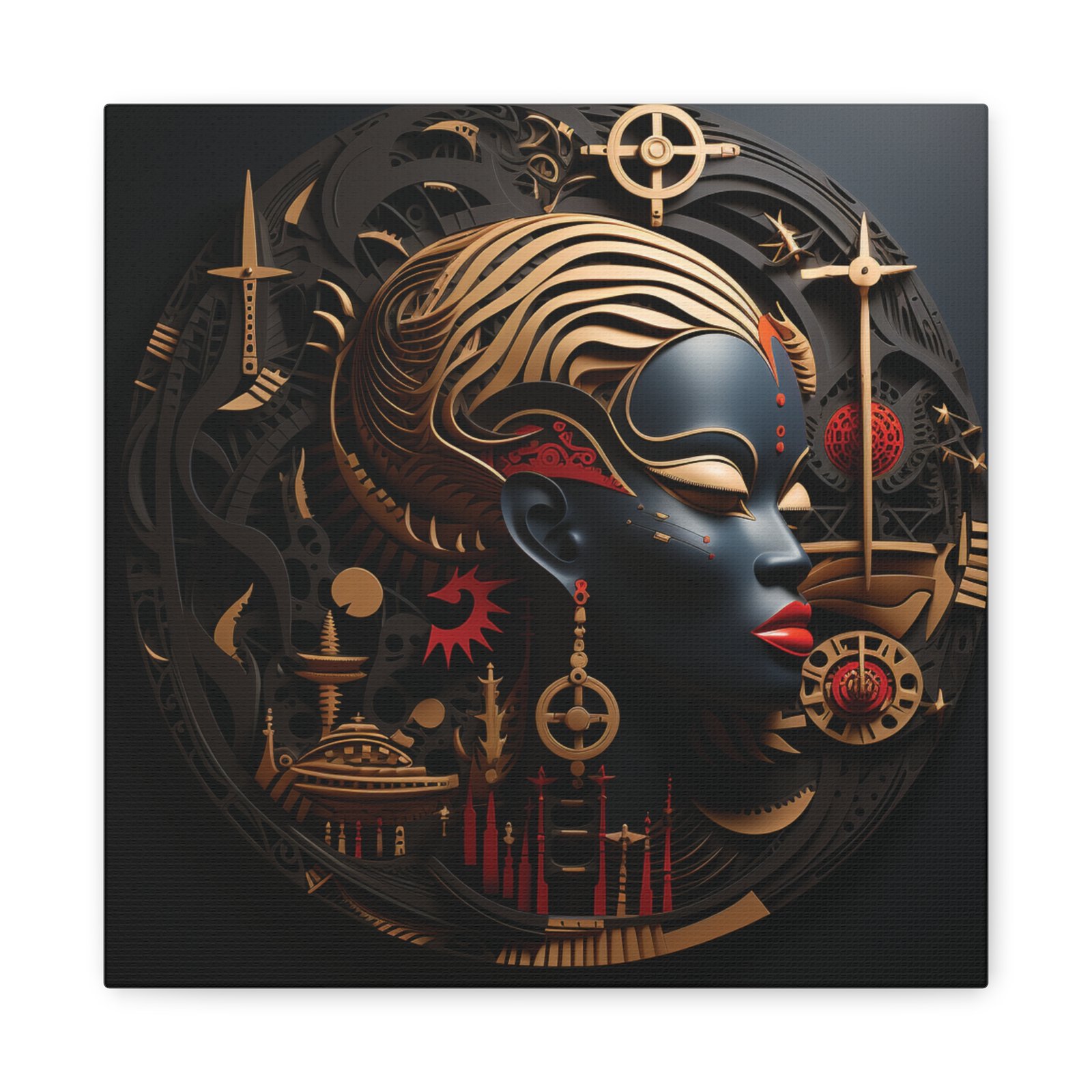 A regal figure crowned with metallic geometry and cosmic symbols. This piece radiates strength, elegance, and otherworldly intelligence. The Empress’s gaze is serene yet powerful, representing a guardian spirit who holds the secrets of the stars and the wisdom of ancient civilizations.