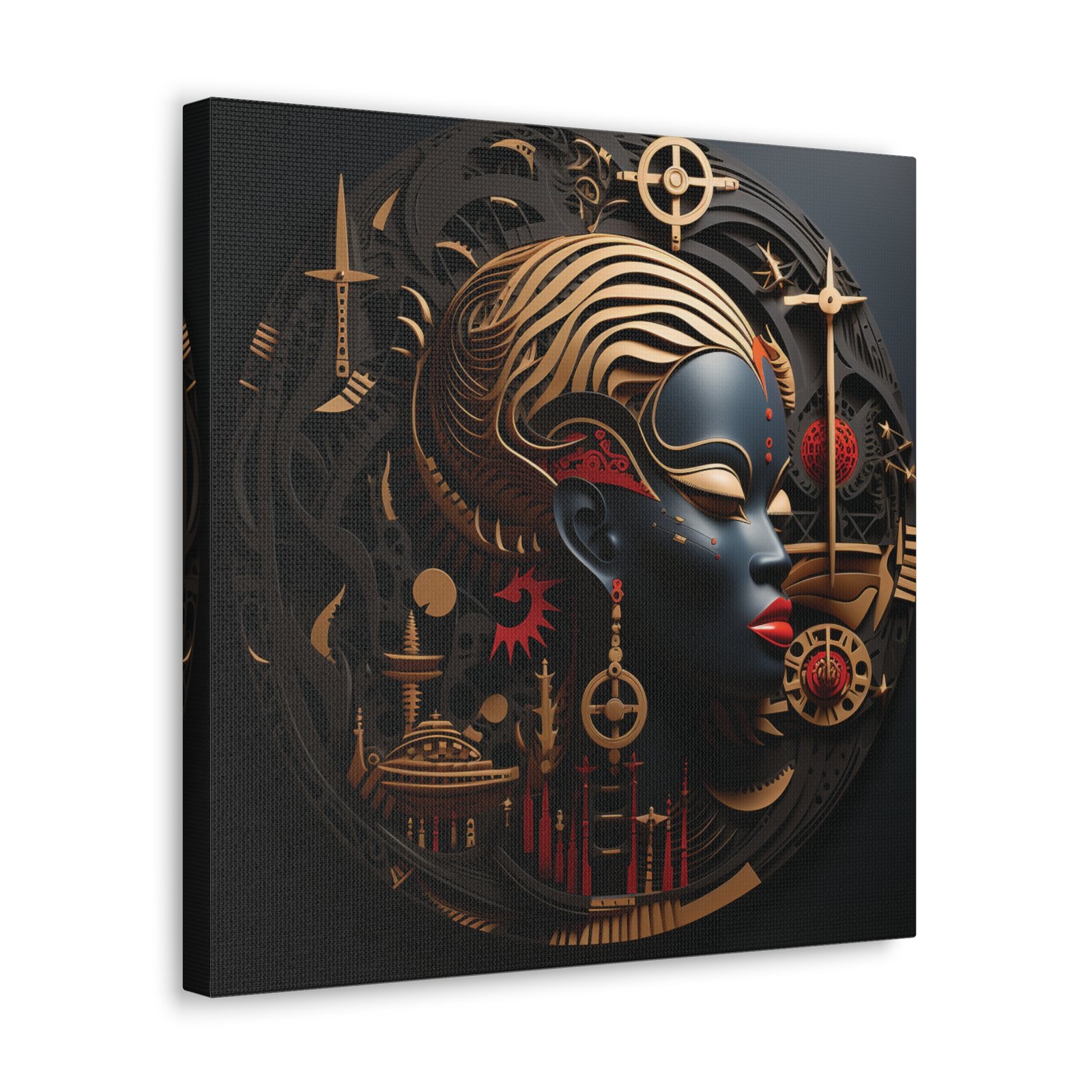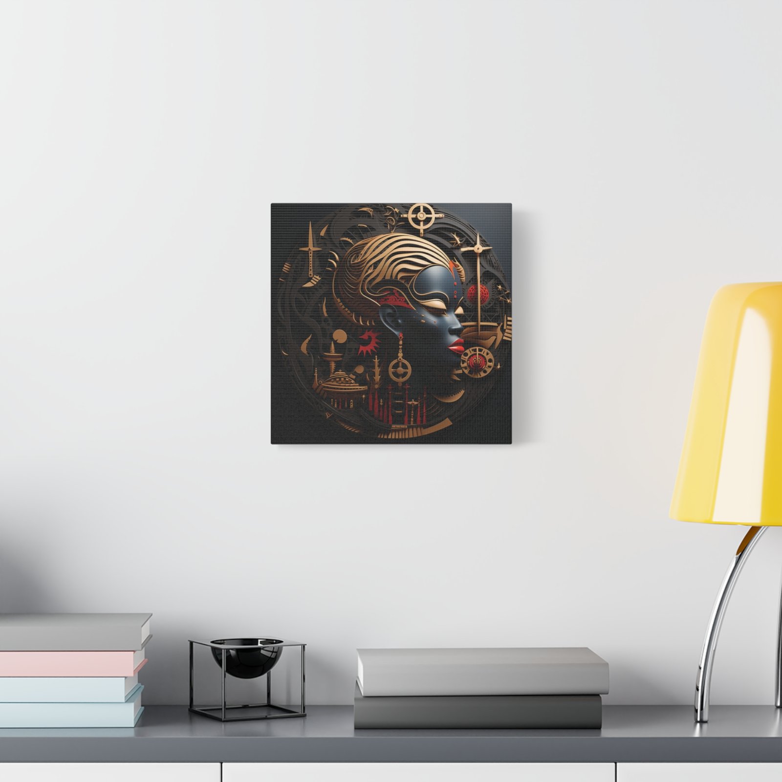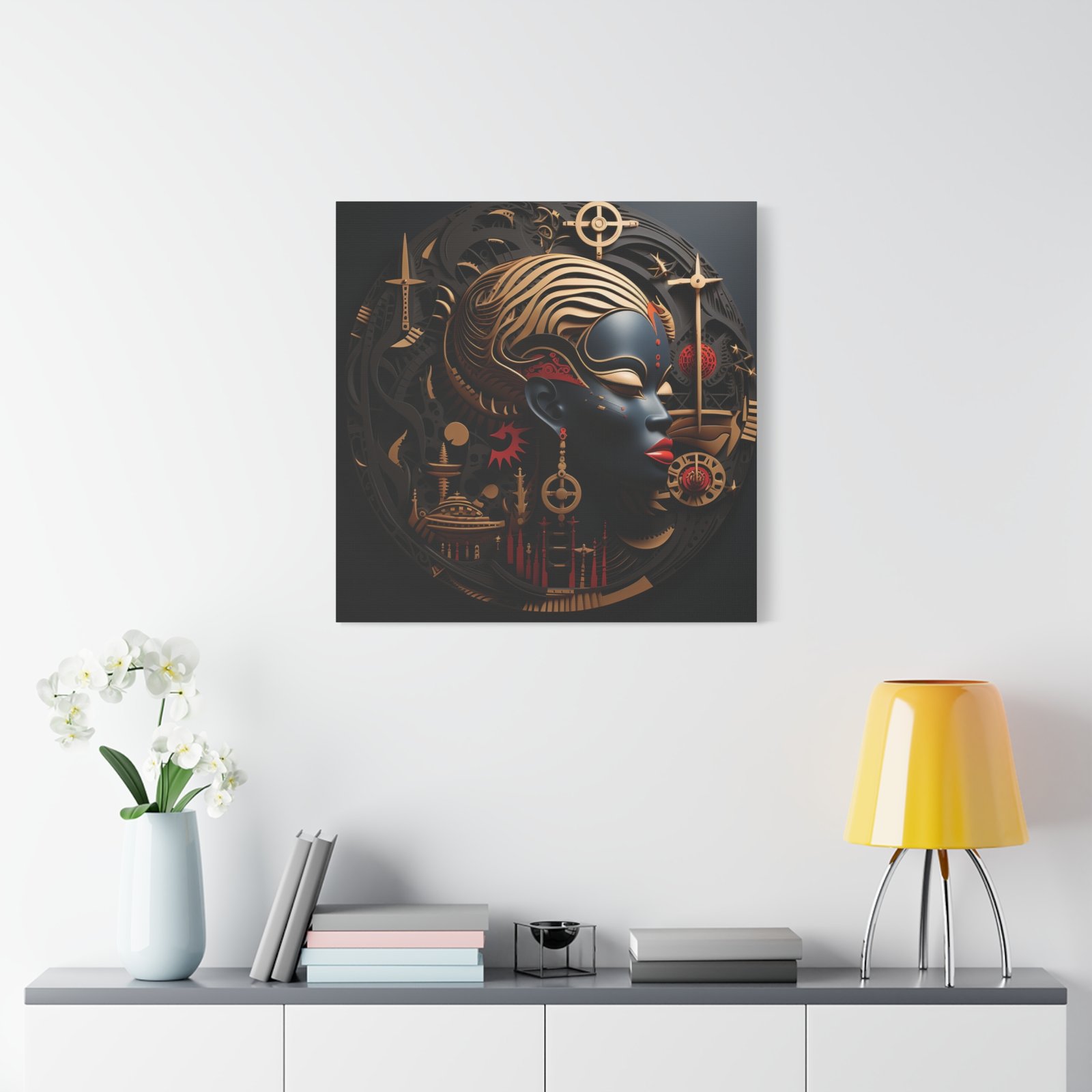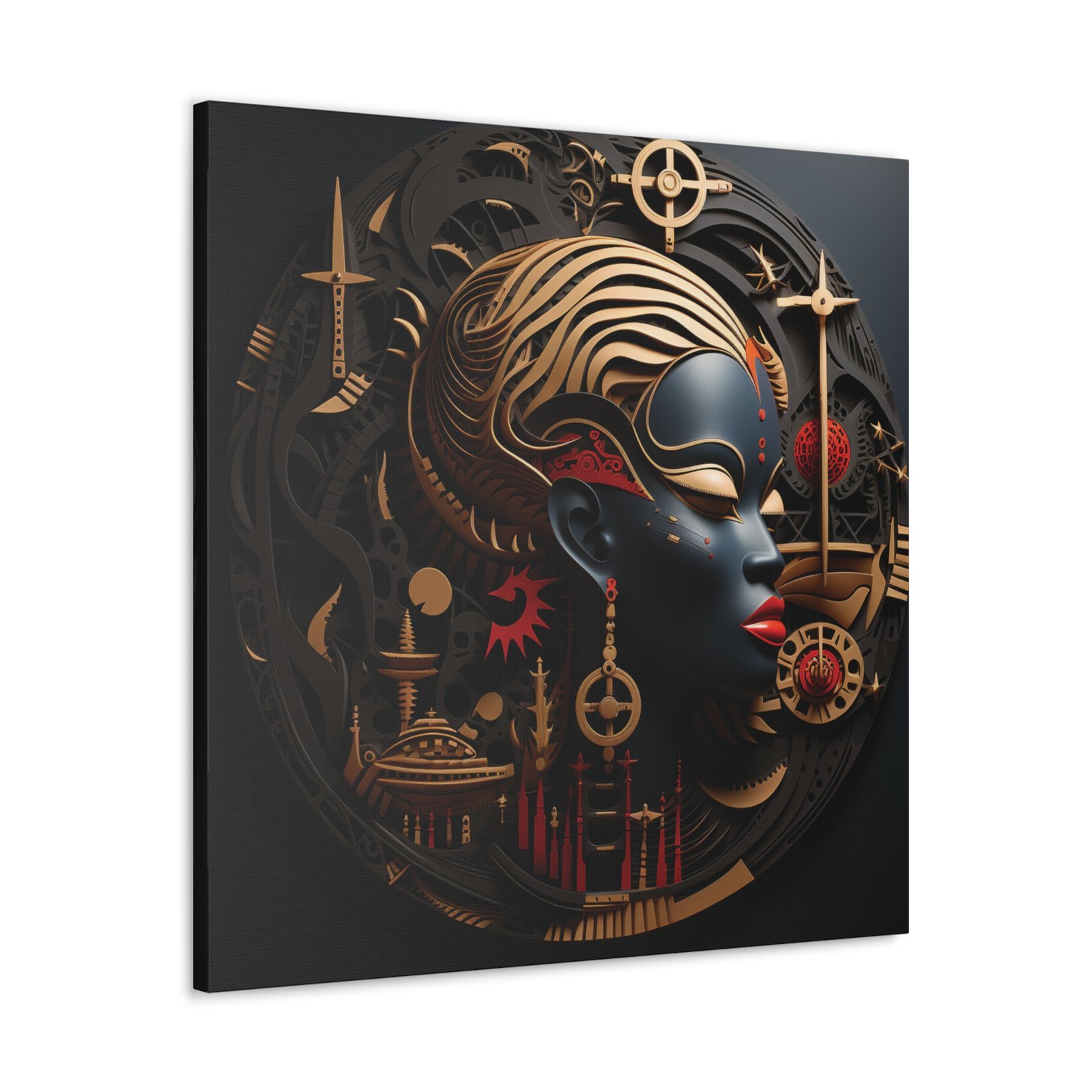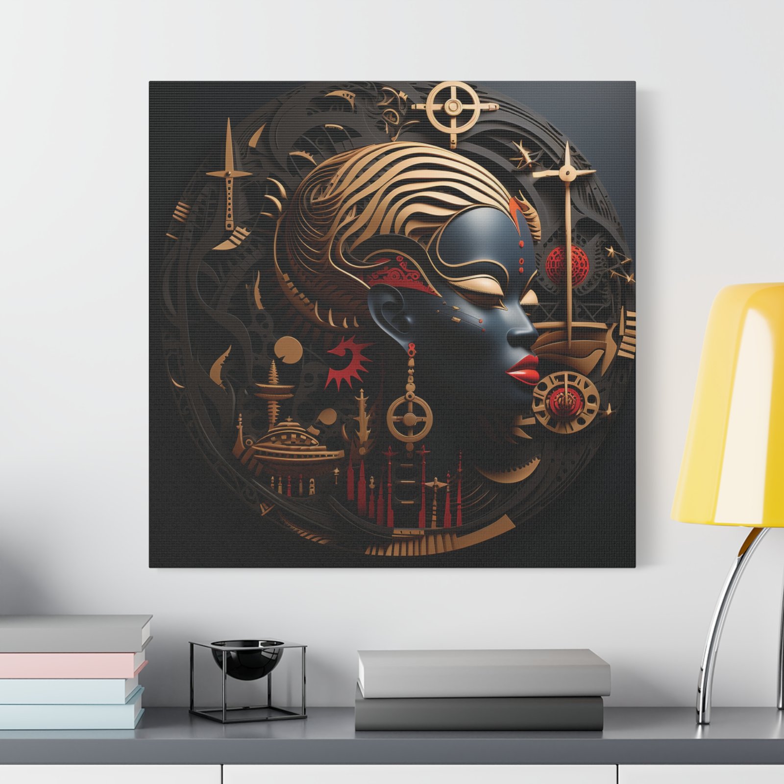 A regal figure crowned with metallic geometry and cosmic symbols. This piece radiates strength, elegance, and otherworldly intelligence. The Empress’s gaze is serene yet powerful, representing a guardian spirit who holds the secrets of the stars and the wisdom of ancient civilizations.