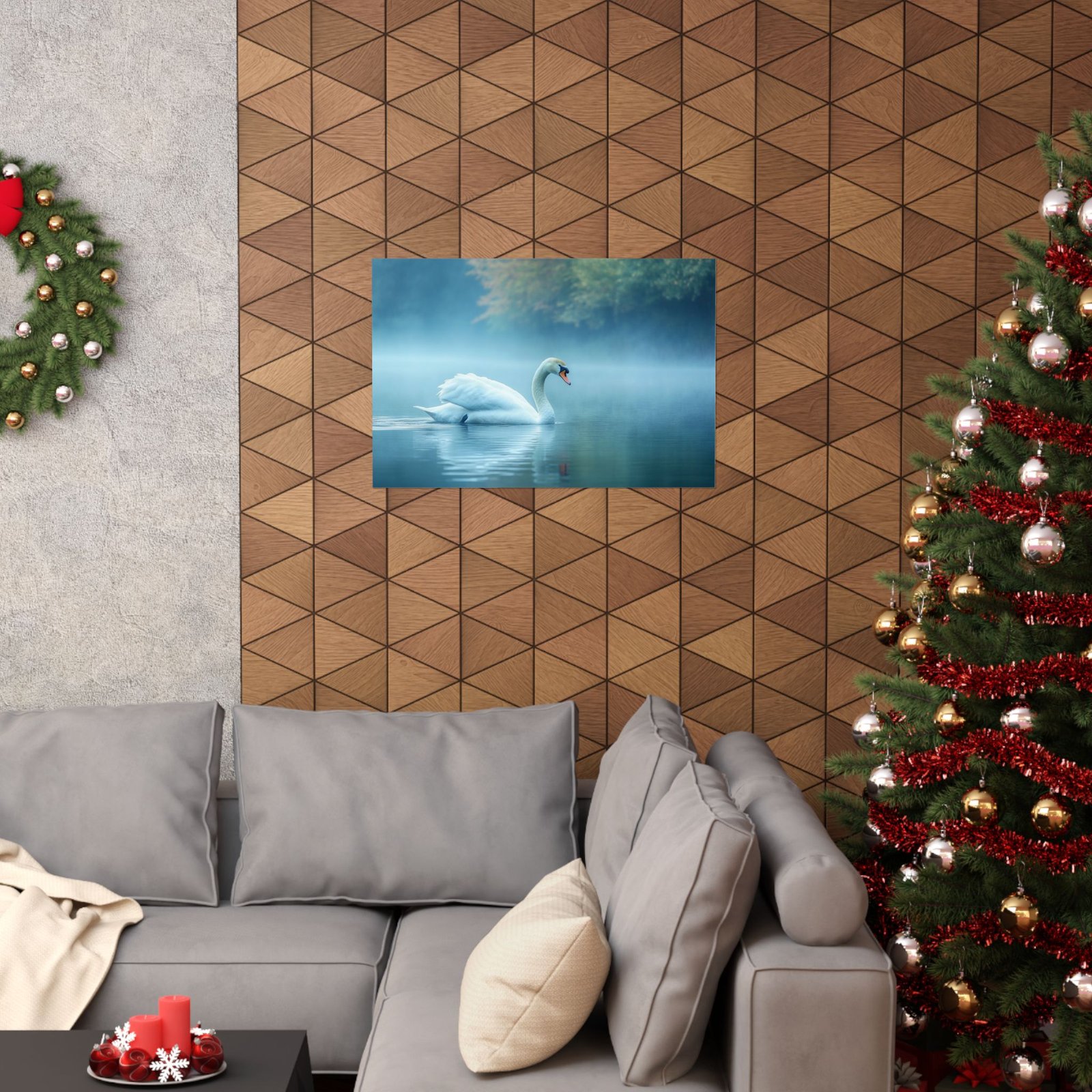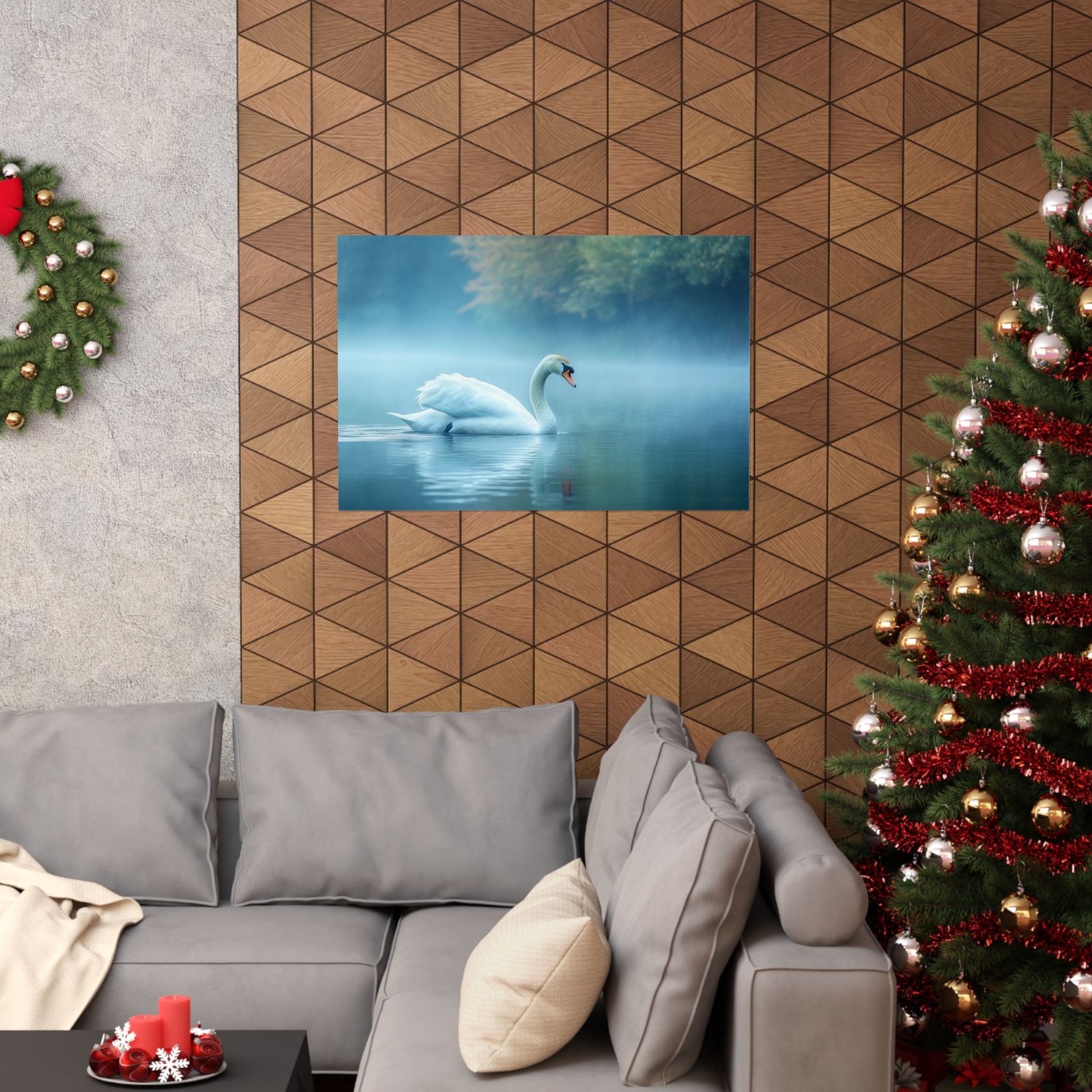 Whispers on Water captures the quiet elegance of a swan gliding across a mist-veiled lake at dawn. With delicate ripples and a hushed palette of blues and soft whites, this serene composition evokes stillness, solitude, and grace. Perfect for meditation spaces, bedrooms, or anywhere peace is welcome.